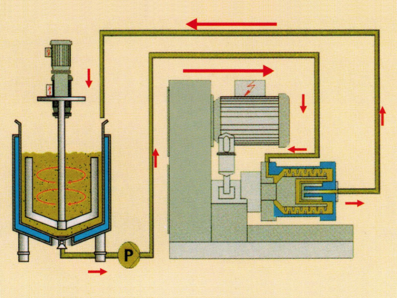 縮短漿料在磨腔內(nèi)的滯留時(shí)間,有效抑制溫度上升。通過(guò)循環(huán)冷卻水的冷卻,可實(shí)現(xiàn)低溫研磨。